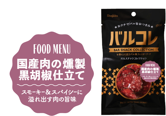 バルの美味しさを気軽なフィンガーフードで楽しめる、宅飲みを盛り上げるおつまみシリーズです。